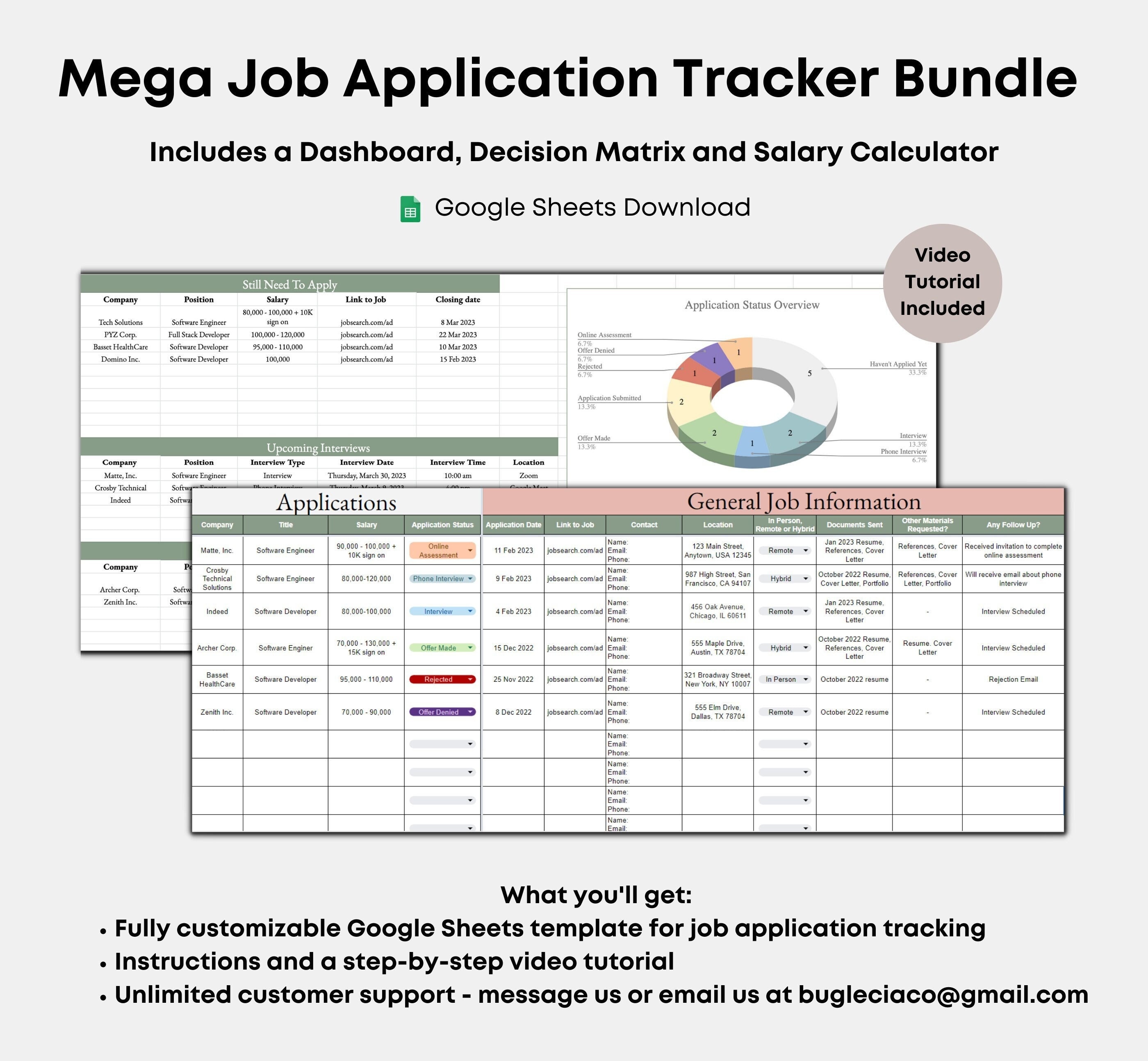 Job Application Tracker Bundle With Decision Matrix And Salary Calculator Google Sheets Dashboard Fully Customizable Job Search Etsy Canada